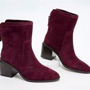 Burnished suede upper, lace-up design, inside zip entry, back pull tab