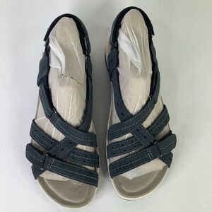 New! Earth Origins Sammie Round Toe Strappy Flat Navy Blue Suede Sandals Sz 8