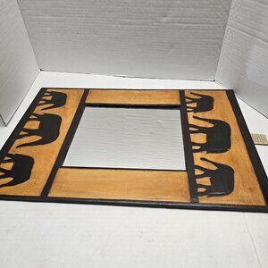 New Earthbound Trading Co Artisan Folk Art Wood Mirror Wall Hand Made Elephant