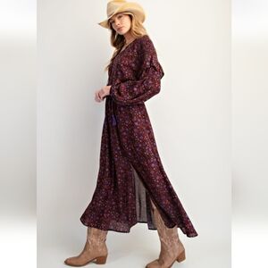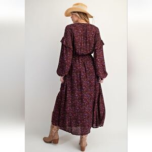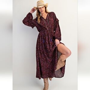 New with Tag Easel Black Floral Printed Rayon Gauze Long Sleeve Maxi Dress from Luxury Boutique brand Easel which is carried by fine retailers like Anthropologie and Nordstrom