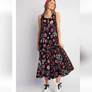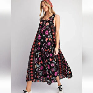 New! Easel Black Floral Wide Leg Jumpsuit