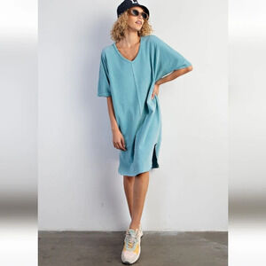New with Tag Easel Blue V-Neck Mineral Washed Terry Knit Tunic T-shirt Dress from Luxury Boutique brand Easel which is carried by fine retailers like Anthropologie and Nordstrom
