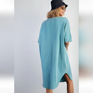 New! Easel Blue Mineral Washed Terry Knit Tunic T-shirt Dress