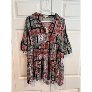 New Easel Boho Indie Peasant Cottagecore Printed Babydoll Top Blouse