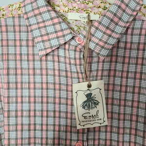 New! Easel Button Front Collared Plaid Floral Short Sleeve Blouse. From Luxury boutique label Easel which is carried by fine retailers like Anthropologie and Nordstrom.