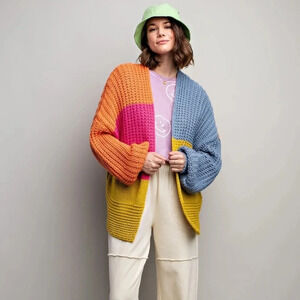 New! Easel Colorblock Chunky Knit Sweater Cardigan