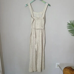 New without Tag Easel Cotton/Linen blend Striped jumpsuit overalls. From Luxury boutique label Easel which is carried by fine retailers like Anthropologie and Nordstrom