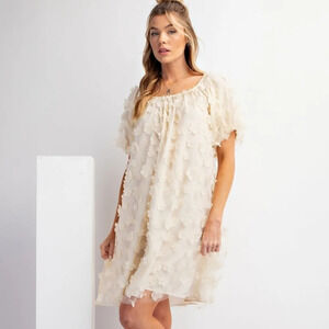 New! Easel Cream Floral Flower Applique Mesh Dress