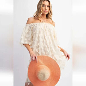 New with Tags Easel Cream Floral Flower Applique Mesh Dress from Luxury Boutique brand Easel which is carried by fine retailers like Anthropologie and Nordstrom