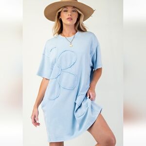 New Easel Daisy Flower Patch Mineral Washed T-Shirt Dress Light Blue