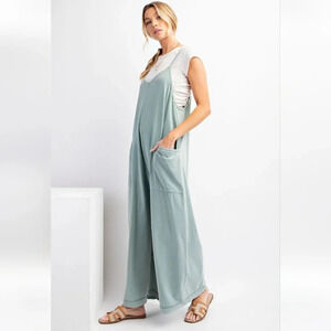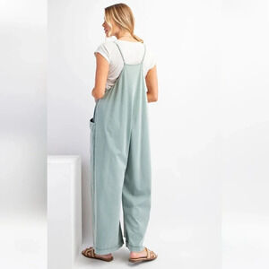 New with Tag Easel Dusty Blue Mineral Washed Cotton Span Jumpsuit from Luxury boutique label Easel which is carried by fine retailers like Anthropologie and Nordstrom