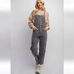 New! Easel Grey Paisley Printed Washed Twill Overalls Jumpsuit