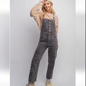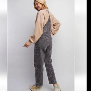 New! Easel Grey Paisley Printed Washed Twill Overalls Jumpsuit