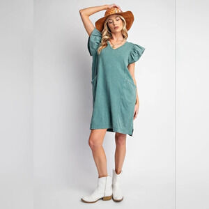 Style: Short Sleeve T-shirt Shirt Dress Flutter Ruffle Sleeve Shirtdress Fashion Blogger Favorite On Trend Trendy Boho Grunge Everyday Casual Dress Fall Back-To-School Style Spring Summer Winter Versatile Anthro Southern Style Lagenlook Layer Layering Western Country Farmcore Free People Bohemian POL Staple Capsule Wardrobe Ideas