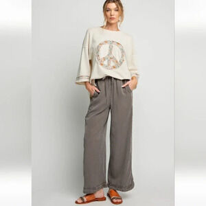 New with Tag Easel Mineral Washed Soft Twill Wide Leg Pants from Luxury Boutique brand Easel which is carried by fine retailers like Anthropologie and Nordstrom