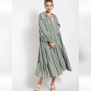 New! Easel Paisley Mint Green Printed Gauze Long Sleeve Maxi Dress by luxury Boutique brand Easel which is carried by fine retailers like Anthropologie and Nordstrom.