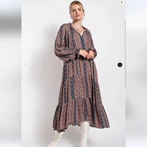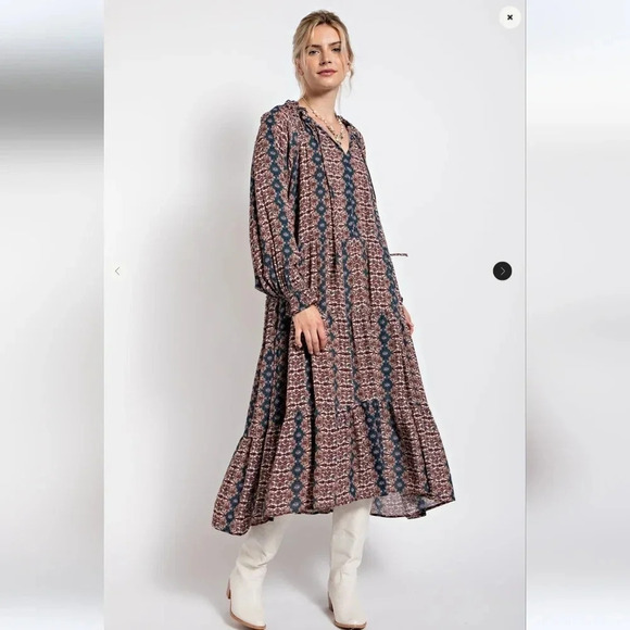 New! Easel Paisley Printed Gauze Long Sleeve Maxi Dress by luxury Boutique brand Easel which is carried by fine retailers like Anthropologie and Nordstrom.
