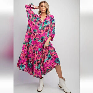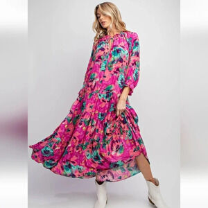 New with Tag Easel Floral Printed Gauze Maxi Dress in beautiful Ruby Pink color from Luxury Boutique brand Easel which is carried by fine retailers like Anthropologie and Nordstrom.
