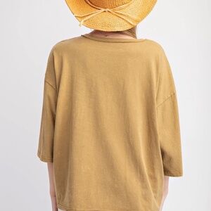 Easel Cotton Jersey Top with Large Front Star Patch in Martini Olive