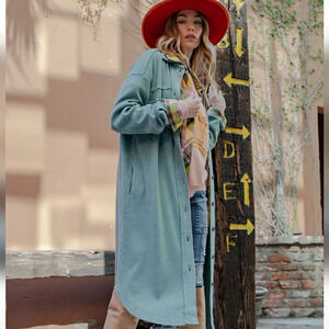 Style: Blue Green Long Sleeve Flowy Oversized Shirtdress Shacket Jacket Coat Shirt Dress Duster Midi Maxi Thermal Cardigan Fashion Blogger Favorite On Trend Trendy Boho Grunge Everyday Casual Dress Kimono Fall Spring Summer Winter Versatile Anthro Peasant Southern Style Lagenlook Layer Layering Western Country Back-To-School Style Farmcore Free People Bohemian Cottage Core POL Cottagecore Staple Capsule Wardrobe Ideas