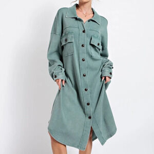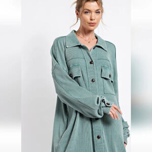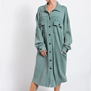 New! Easel Thermal Button Down Shirt Dress Long Shacket