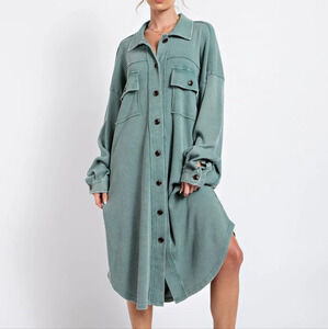 New! Easel Mineral Washed Thermal Button Down Shirt Dress Shacket from luxury Boutique brand Easel which is carried by fine retailers like Anthropologie and Nordstrom.