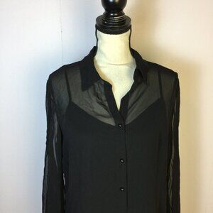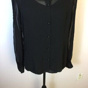 NWOT East 5th Shirt Blouse Sz L Womans Black Sheer Chiffon Long Sleeve Button Up