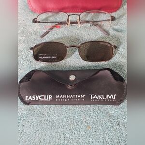 New Easytwist Glasses Frames With Eaasgrip Polarized Lens. These are glasses made to put your own lens in and the come with Polarized clip on singlass lens