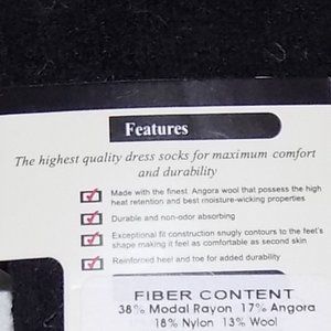 new (two pairs)1 solid black and one black/gray/red argyle pattern in wool/angora/rayon.nylon/polyester/spandex blend