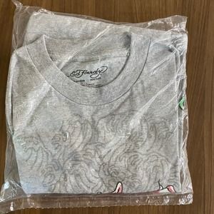 New Ed Hardy Koi Fish Short Sleeve Gray T shirt sz Large