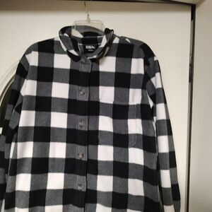 New with tag eddie bauer micro fleece long sleeve button down shirt size women's L. It is black and white has pockets