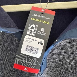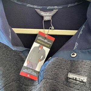 New Eddie Bauer Blue Sweater Fleece Knit Sweatshirt Men’s Size XL Pockets