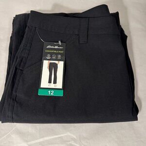 New Eddie Bauer Convertible Pant Women's Size 12 Black Adjustable Length UPF 50+