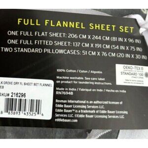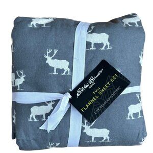 New Eddie Bauer Full Flannel Sheet Set Elk Grove Gray 4 Pcs Oeko-Tex Cabincore