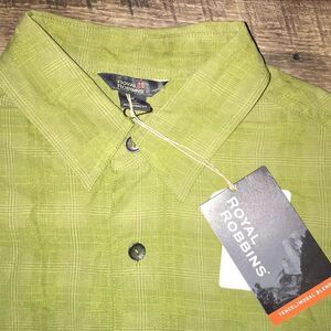 New Edelweiss Technology Fabric Royal Robbins Green Plaid Check SS Trail shirt S