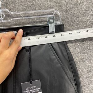 New Eden Pants Women 2 Black Super High Rise 90's Straight Sofia Faux Leather