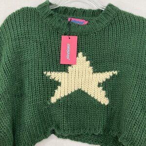 New Edikted size XS/S Green White Star Oversized Cropped Sweater Boho Grunge