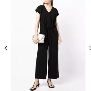 New Eileen Fisher Black Drawstring Short Sleeve Jumpsuit Medium