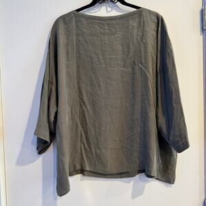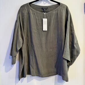 New Eileen Fisher Sandwashed Twill Box-Top Green Side Slit 3/4 Sleeve Sz XL