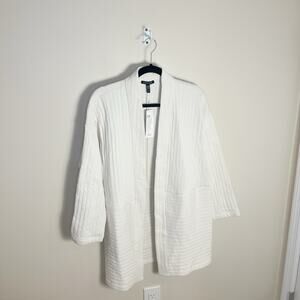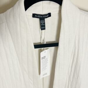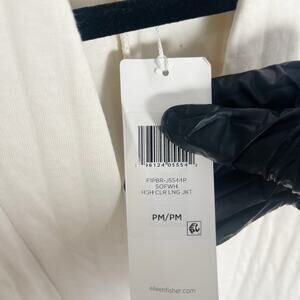 New Eileen Fisher Soft White High Collar Long Blazer Jacket Medium Petite