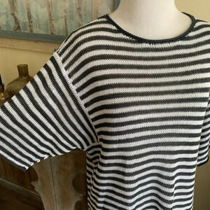 NEW Eileen Fisher Striped Organic Linen Tunic Sweater Graphite and White.