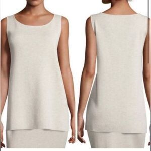 New Eileen Fisher tan 100% wool sleeveless roundneck the icon tunic top