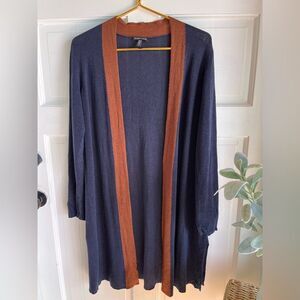 New Eileen fisher midnight blue brown silk tencel long open cardigan