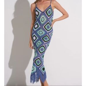 New Elan Aleki Diamond Crochet Blue Multicolor Maxi Dress/Swim Cover-Up Large