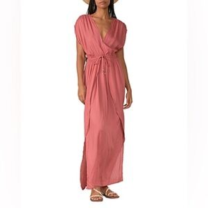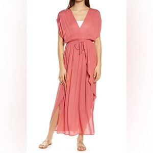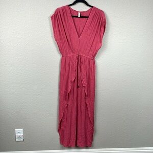New Elan Crossover Deep V Neck Maxi Dress Swim Cover Up Vacation Rose Pink Sz M