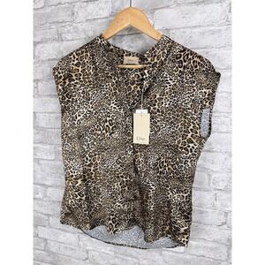 New Elie Tahari Blouse XS Cap Sleeves Button Up Office Layering Animal Print