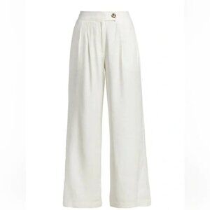 Crafted of breezy linen fabrication, these Elie Tahari trousers are designed in a high-waisted, wide leg silhouette.