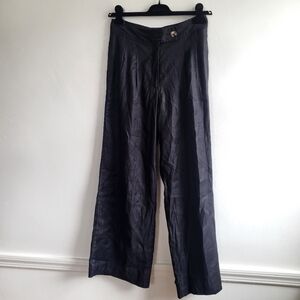 New With Tag Elie Tahari Linen Blend Wide Leg Black Pants Trousers