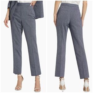 New Elie Tahari Saige Cotton Trouser Pants High Rise Navy Blue Check Sz 10