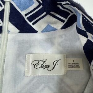 New Eliza J Linen Blend Dress Blue Geometric Print Size 4 Sleeveless Resort